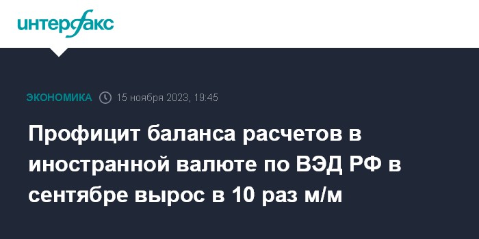 Профицит баланса расчетов в иностранной валюте по ВЭД РФ в сентябре вырос в 10 раз м/м