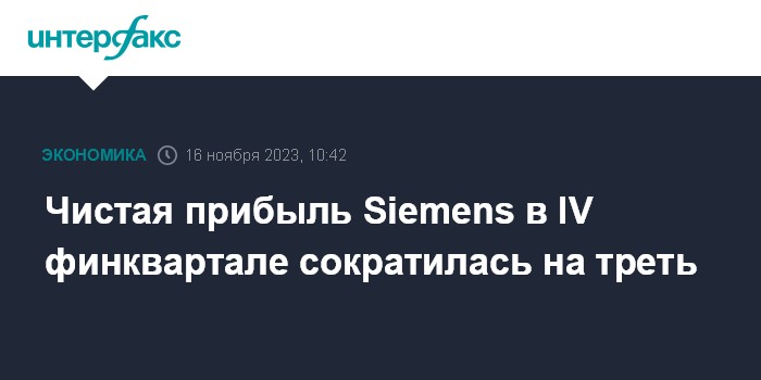 Москва. 16 ноября. INTERFAX.RU - Крупнейший в Европе промышленный конгломерат Siemens AG в четвертом квартале 2023 финансового года сократил чистую прибыль на треть, однако увеличил выручку и прибыль в промышленном сегменте.
