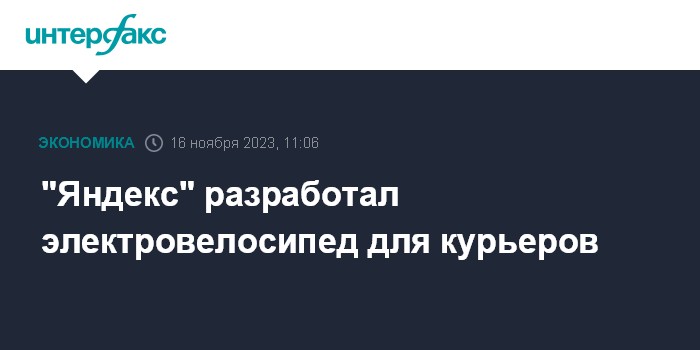 Москва. 16 ноября. INTERFAX.RU - "Яндекс" в рамках YaC 2023 презентовал электровелосипед собственной разработки для курьеров.