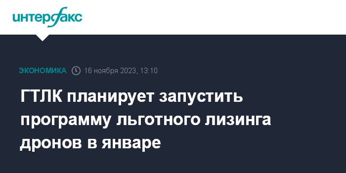 Москва. 16 ноября. INTERFAX.RU - "Государственная транспортная лизинговая компания" (ГТЛК) планирует запустить программу льготного лизинга беспилотных авиационных систем (БАС) в январе 2024 года, сообщил гендиректор компании Евгений Дитрих.