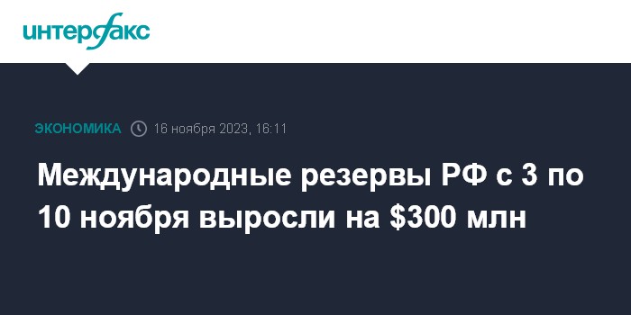Международные резервы РФ с 3 по 10 ноября выросли на $300 млн