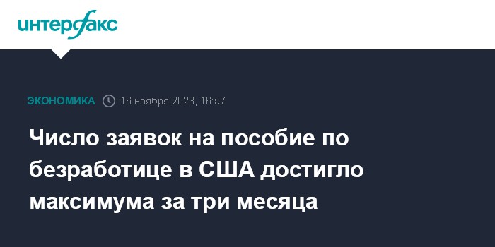 Число заявок на пособие по безработице в США достигло максимума за три месяца
