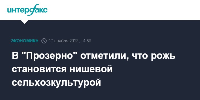 Москва. 17 ноября. INTERFAX.RU - Сбор ржи в РФ в 2023 году снизится до 1,85 млн тонн с 2,2 млн тонн в прошлом году. Это зерно становится нишевой сельхозкультурой, считает генеральный директор компании "ПроЗерно" Владимир Петриченко.