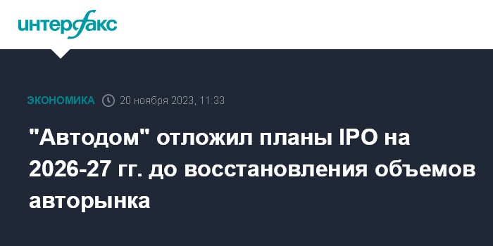 "Автодом" отложил планы IPO на 2026-27 гг. до восстановления объемов авторынка