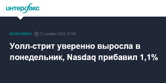 Уолл-стрит уверенно выросла в понедельник, Nasdaq прибавил 1,1%