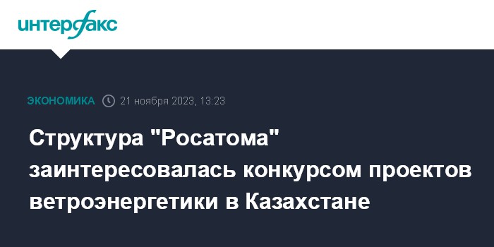 Структура "Росатома" заинтересовалась конкурсом проектов ветроэнергетики в Казахстане