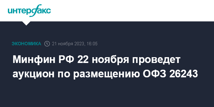 Минфин РФ 22 ноября проведет аукцион по размещению ОФЗ 26243