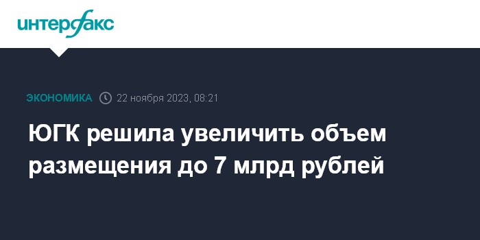 ЮГК решила увеличить объем размещения до 7 млрд рублей
