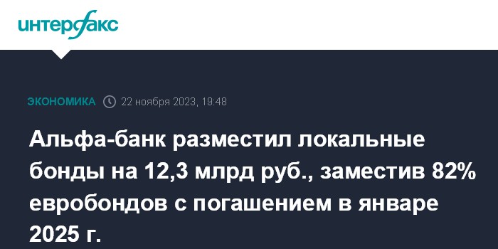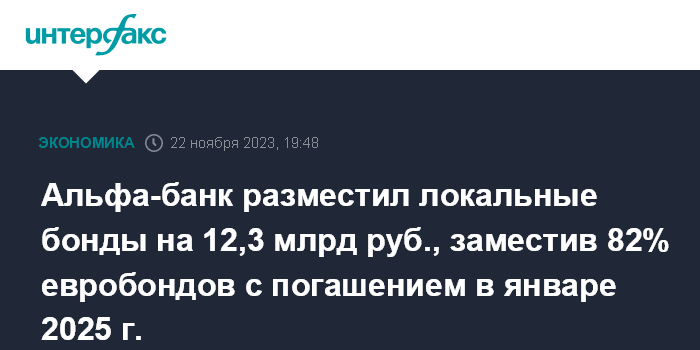 Альфа-банк разместил локальные бонды на 12,3 млрд руб., заместив 82% евробондов с погашением в январе 2025 г.