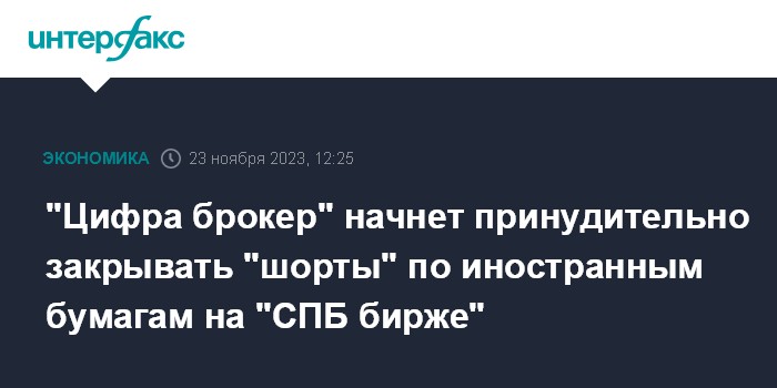 "Цифра брокер" начнет принудительно закрывать "шорты" по иностранным бумагам на "СПБ бирже"