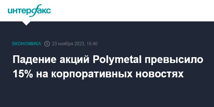 Москва. 23 ноября. INTERFAX.RU - Падение акций Polymetal в ходе торгов на Московской бирже в четверг превысило 15% (до 474 рублей за штуку) на корпоративных новостях.