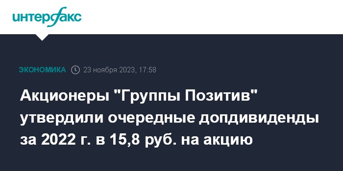 Акционеры "Группы Позитив" утвердили очередные допдивиденды за 2022 г. в 15,8 руб. на акцию