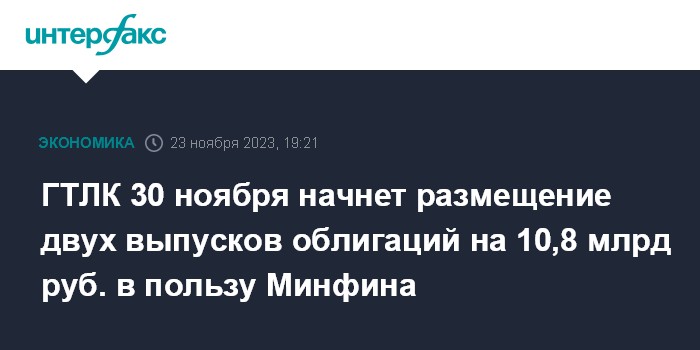 ГТЛК 30 ноября начнет размещение двух выпусков облигаций на 10,8 млрд руб. в пользу Минфина