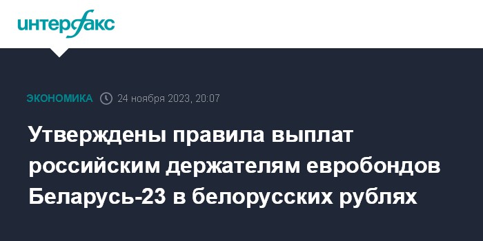 Утверждены правила выплат российским держателям евробондов Беларусь-23 в белорусских рублях