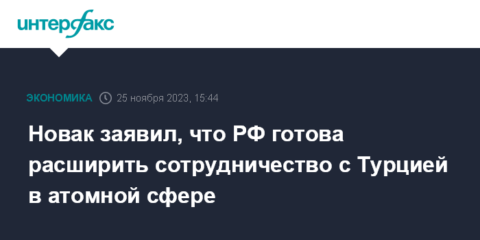 Новак заявил, что РФ готова расширить сотрудничество с Турцией в атомной сфере