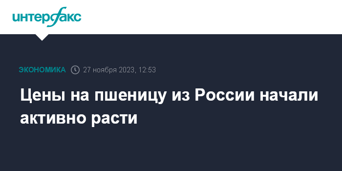 Москва. 27 ноября. INTERFAX.RU - Экспортные цены на пшеницу из РФ начали активно расти под влиянием увеличивающегося спроса импортеров и снижения поставок из-за непогоды, сообщили "Интерфаксу" в аналитическом центре АО "Русагротранс".