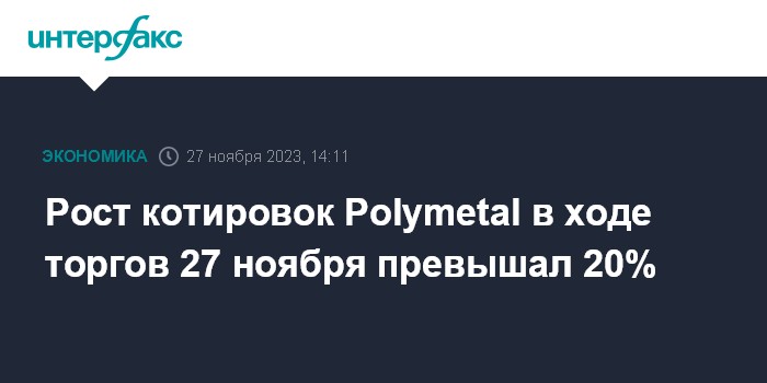 Рост котировок Polymetal в ходе торгов 27 ноября превышал 20%