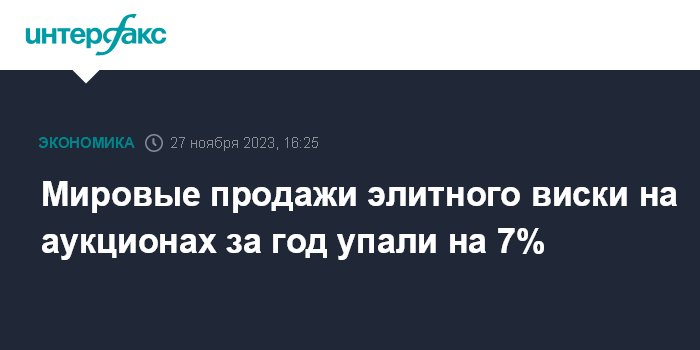 Это рекордное падение с 2012 года, не считая ковидного 2020 года, когда многие аукционы были закрыты, отмечает Financial Times. В 2022 году продажи элитного виски подскочили на 19%.