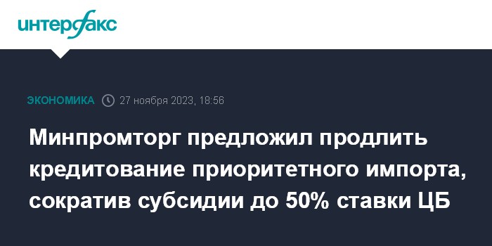 Минпромторг предложил продлить кредитование приоритетного импорта, сократив субсидии до 50% ставки ЦБ