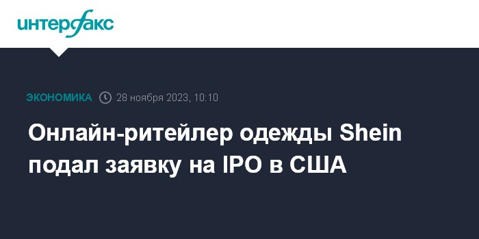 Москва. 28 ноября. INTERFAX.RU - Онлайн-ритейлер Shein, работающий в fashion-сегменте, подал конфиденциальную заявку на проведение IPO в США, пишет The Wall Street Journal со ссылкой на информированные источники.
