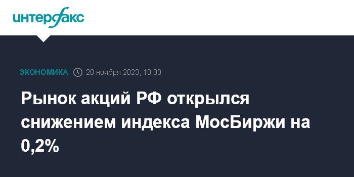 Рынок акций РФ открылся снижением индекса МосБиржи на 0,2%