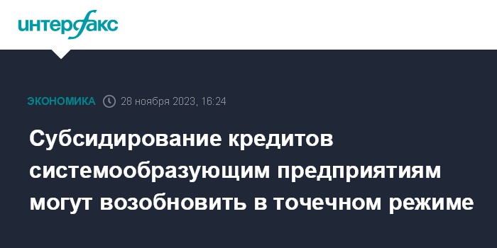 Субсидирование кредитов системообразующим предприятиям могут возобновить в точечном режиме