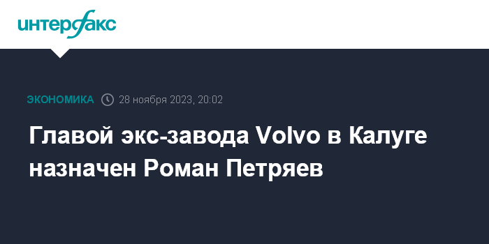 Главой экс-завода Volvo в Калуге назначен Роман Петряев