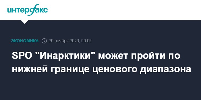Москва. 29 ноября. INTERFAX.RU - SPO ПАО "Инарктика", ведущего производителя атлантического лосося и форели в РФ, может пройти по нижней границе первоначального ценового диапазона.