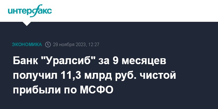 Москва. 29 ноября. INTERFAX.RU - Банк "Уралсиб" за 9 месяцев 2023 года заработал 11,3 млрд рублей чистой прибыли по МСФО, в III квартале - 4,2 млрд рублей, говорится в отчете кредитной организации.