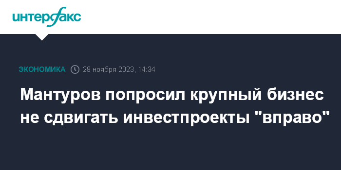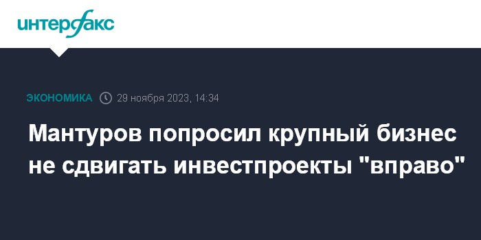 Мантуров попросил крупный бизнес не сдвигать инвестпроекты "вправо"
