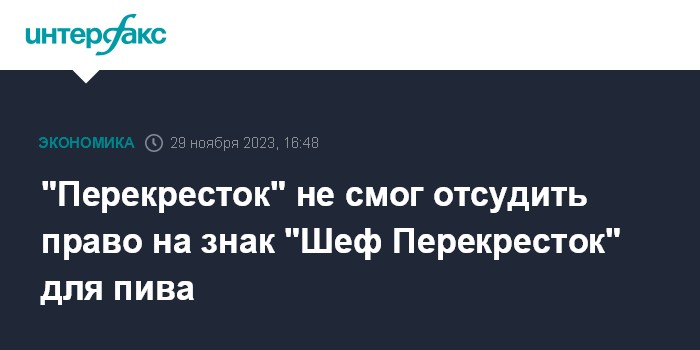 "Перекресток" не смог отсудить право на знак "Шеф Перекресток" для пива