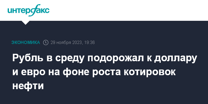Москва. 29 ноября. INTERFAX.RU - По итогам торгов на "Мосбирже" рубль подорожал к бивалютной корзине на фоне роста котировок нефти.