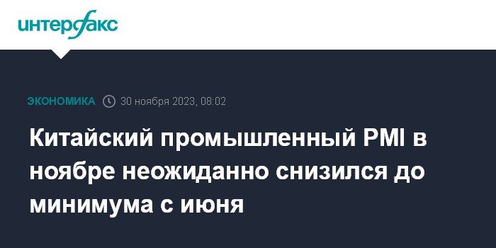 Китайский промышленный PMI в ноябре неожиданно снизился до минимума с июня