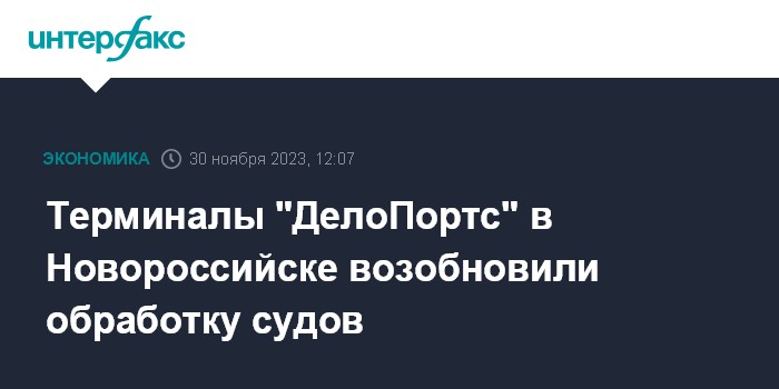 Москва. 30 ноября. INTERFAX.RU - Терминалы "ДелоПортс" (стивидорный холдинг группы компаний "Дело") в Новороссийске возобновили обработку судов, сообщили "Интерфаксу" в пресс-службе группы.
