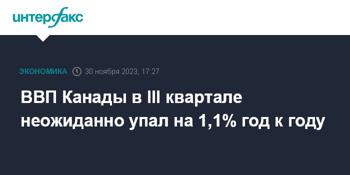 ВВП Канады в III квартале неожиданно упал на 1,1% год к году