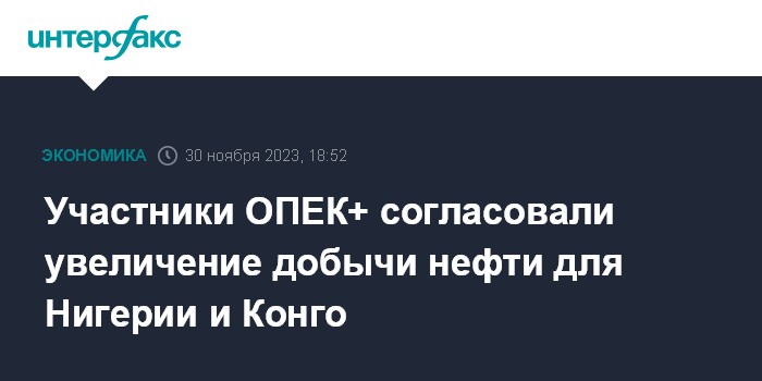 Участники ОПЕК+ согласовали увеличение добычи нефти для Нигерии и Конго