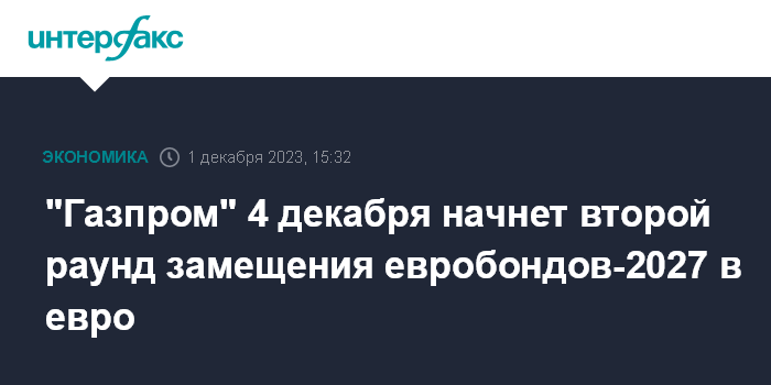 "Газпром" 4 декабря начнет второй раунд замещения евробондов-2027 в евро