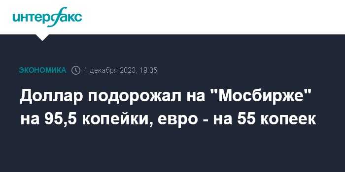 Москва. 1 декабря. INTERFAX.RU - На торгах в пятницу на "Московской бирже" рубль подешевел к бивалютной корзине после завершения ключевых событий недели и перед выходными днями.