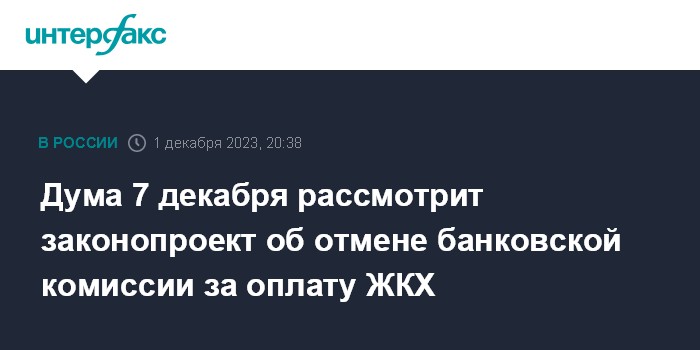 Дума 7 декабря рассмотрит законопроект об отмене банковской комиссии за оплату ЖКХ