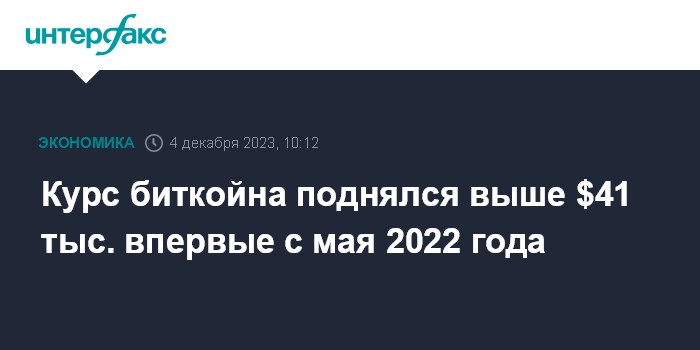 Курс биткойна поднялся выше $41 тыс. впервые с мая 2022 года
