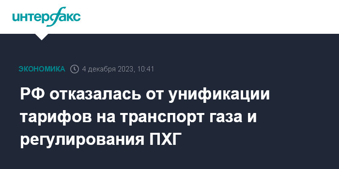 РФ отказалась от унификации тарифов на транспорт газа и регулирования ПХГ
