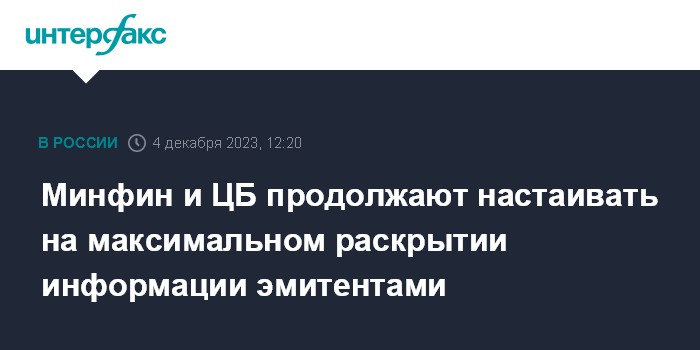 Минфин и ЦБ продолжают настаивать на максимальном раскрытии информации эмитентами