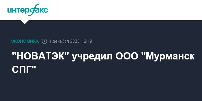 "НОВАТЭК" учредил ООО "Мурманск СПГ"