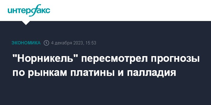 Москва. 4 декабря. INTERFAX.RU - "Норникель" пересмотрел прогнозы по рынкам платины и палладия в 2023-2024 годах.