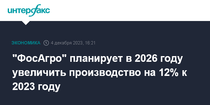 "ФосАгро" планирует в 2026 году увеличить производство на 12% к 2023 году