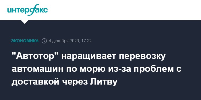 В пресс-службе "Автотора" текущую ситуацию с доставкой автомобилей "Интерфаксу" комментировать не стали, отметив лишь, что автопроизводитель давно использует два маршрута для вывоза готовой продукции - сухопутный железнодорожный и морскими паромами. Их задействование зависит от различных обстоятельств и ситуации при производстве автомобилей.