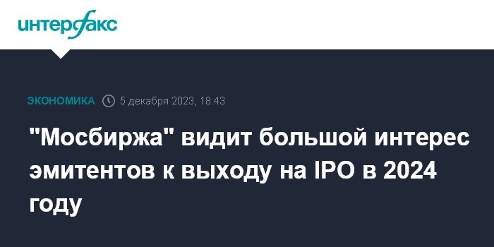 "Мосбиржа" видит большой интерес эмитентов к выходу на IPO в 2024 году