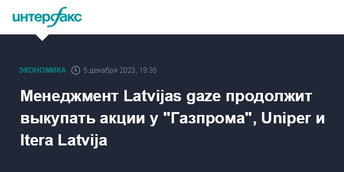 Менеджмент Latvijas gaze продолжит выкупать акции у "Газпрома", Uniper и Itera Latvija