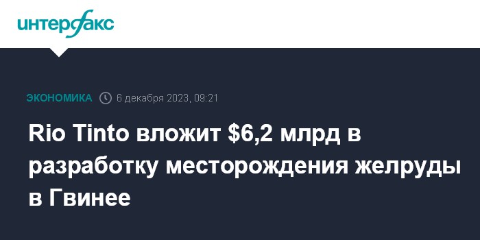 Rio Tinto вложит $6,2 млрд в разработку месторождения желруды в Гвинее