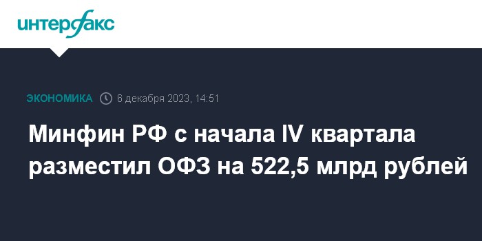 Минфин РФ с начала IV квартала разместил ОФЗ на 522,5 млрд рублей